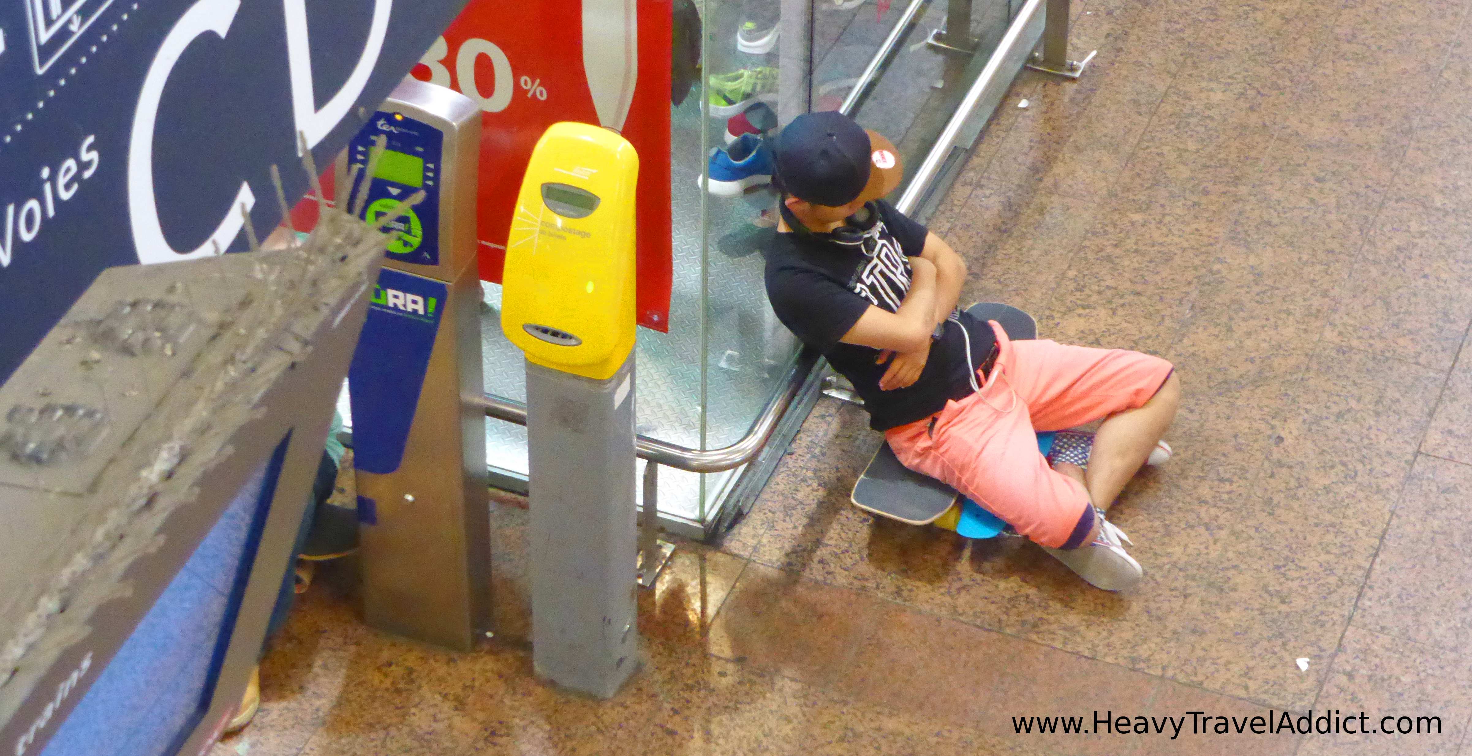 Tired traveller at Part Dieu